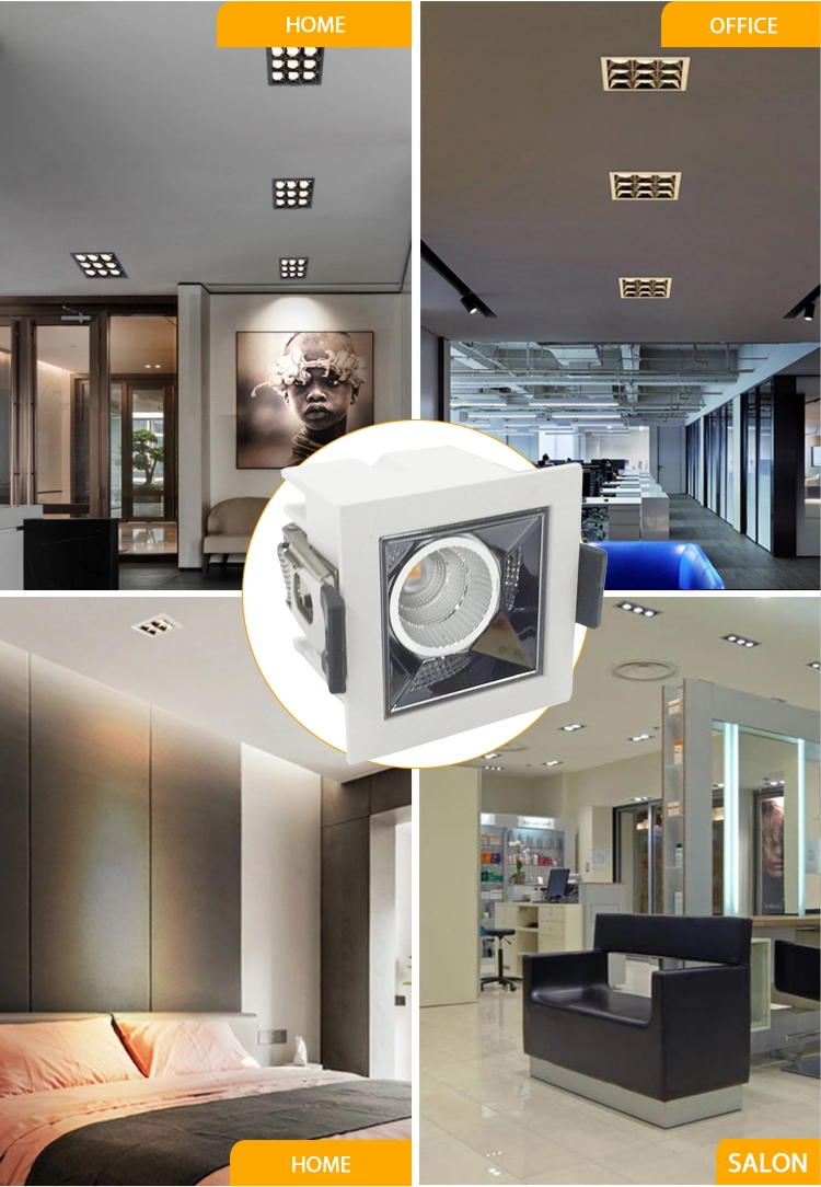 LED Grille Downlight, these lighting fixture is a recessed LED grille downlight with functional adjustable swing head changing the beam direction, combined with the light source of 5w, available color: warm white/3000K, daylight white/4500k, cool white/6000k, it is popularly used at home, hotel, restaurant, shopping mall, jewelry shop, boutique ceiling lighting.